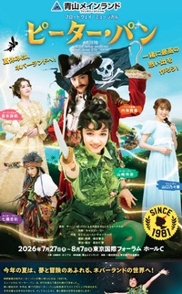 榊原郁恵(榊はキヘンに神)の初代ピーター・パンが舞い降りたのは、1981年。 ミュージカル『ピーター・パン』は、時を重ね、世代を超えて、日本中の子どもたち、そして大人たちに愛され続けてきました。今年の夏も、夢と冒険の世界をお届けします。 いつまでも子どもでいたいピーター・パンと、ネバーランドの冒険で成長する子どもたちの、楽しくて、ちょっぴり切ない物語。躍動感あふれるダンス、大迫力のアクション、心躍る音楽、そしてピーターが客席上空に飛んでくるビッグフライング! 子どもから大人まで楽しめる『ピーター・パン』で、素敵な思い出を作りませんか? 【 上演時間 】 1幕:35分/休憩:15分/2幕:60分/休憩:15分/3幕:40分(計2時間45分)予定 * * * * * 【 鑑賞サポート・公演イベントについて 】 下記の日程につきまして、鑑賞サポートや公演イベントのある回となります。 詳細は公演公式HPをご確認ください。 ◎8/2(日)16:30回 ステージセット見学ツアー https://horipro-stage.jp/news/peterpan2026_event/ ◎8/3(月)11:30回 鑑賞サポート(手話付き公演・字幕タブレットお貸し出し) https://horipro-stage.jp/news/peterpan2026_ticket/#support |